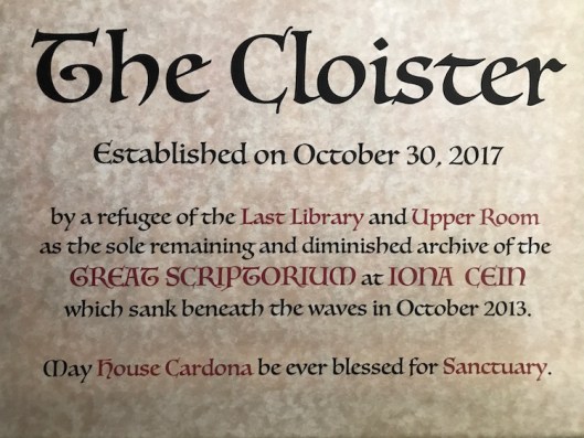 Thus, today, here I am, dropping a note into the Void to say, “I’m on it.” It’s going to take some serious sprinting over the next five days, but I’m pretty confident I can make it. I’ve got over $400.00 in pledges on my fund-raising page and I don’t want to disappoint. What a great crew. They know they probably won’t see a copy of Scions for years if at all, but they have faith in me enough to throw some cash at OLL. I don’t plan on letting them down.